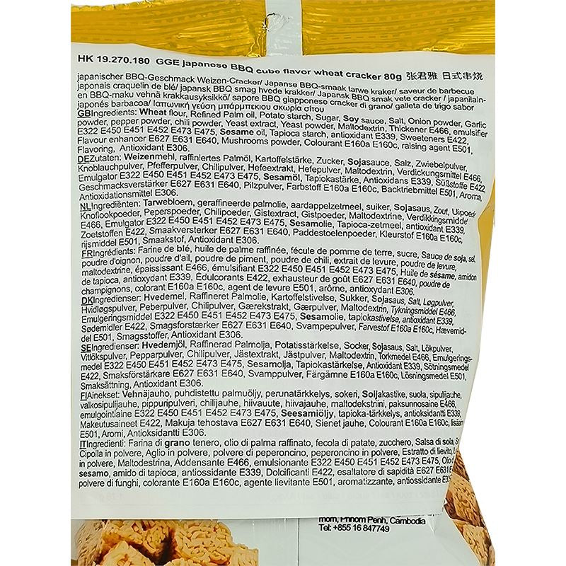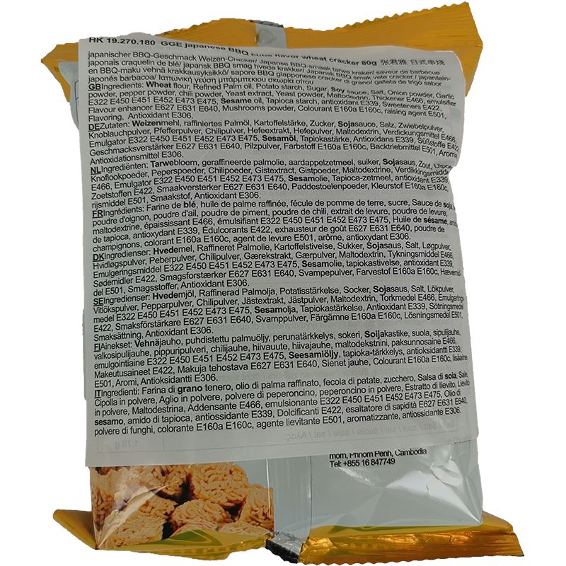 Weizenmehl (51%), raffiniertes Palmöl, Kartoffelstärke, Zucker, schwarzer Pfeffer, Sojasauce (Soja, Salz), Salz, Geschmacksverstärker (MSG), Sesamöl.
