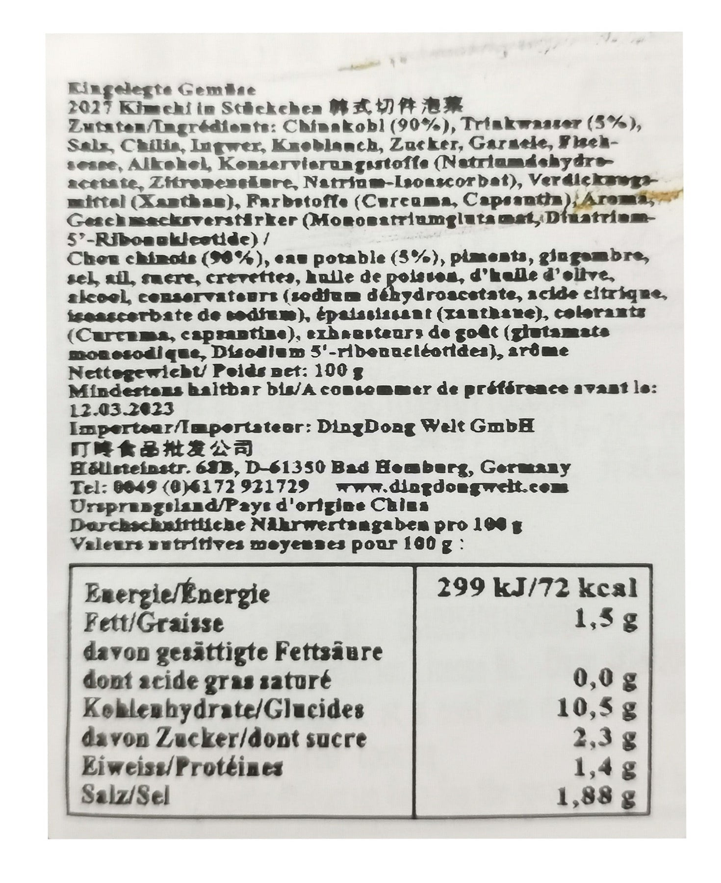 淳于府 韩式 切件泡菜100克/Kimchi in Stückchen 100g