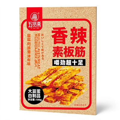 五贤斋 香辣素板筋 100克 /Sojabasis Vegetarisches Sehnen Scharfer Geschmack 100g WXZ